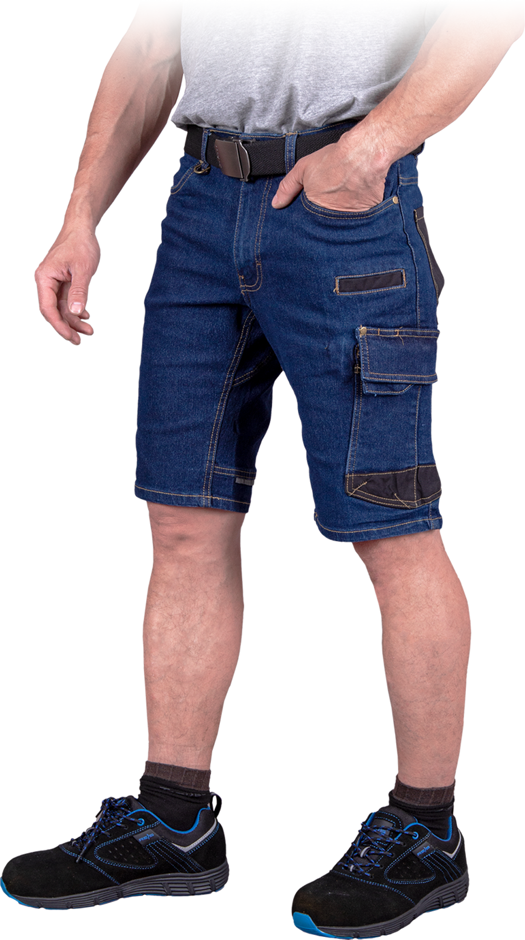 Elastyczne spodnie ochronne do pasa z krótkimi nogawkami, męskie.
